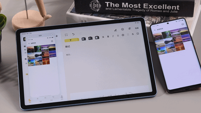 在实际的使用过程中,vivo Pad的互联投屏功能确实能真正做到提高工作效率,比如平板在原子笔记中编辑时,投屏后可直接把手机中的图片拖拽并插入至平板的文档,同时,手机选中的图片也可⼀碰自动动提示“传输文件”或“插⼊图片至文档”。