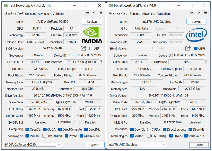 显卡方面,RedmiBook Pro 14 2022配备了NVIDIA GeForce MX550独立显卡,采用图灵架构设计,配备2GB GDDR6显存,核心频率可达1500MHz,并且采用PCIe 4.0总线接口,相比上代PCIe 3.0带宽提升一倍,完全满足日常办公所需。