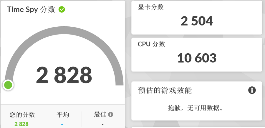 3DMark Time Spy是一个DX12基准测试,可分别测试GPU和CPU对DX12的支持,RedmiBook Pro 14 2022的得分为2828分,显卡分数为2504,CPU分数为10603。