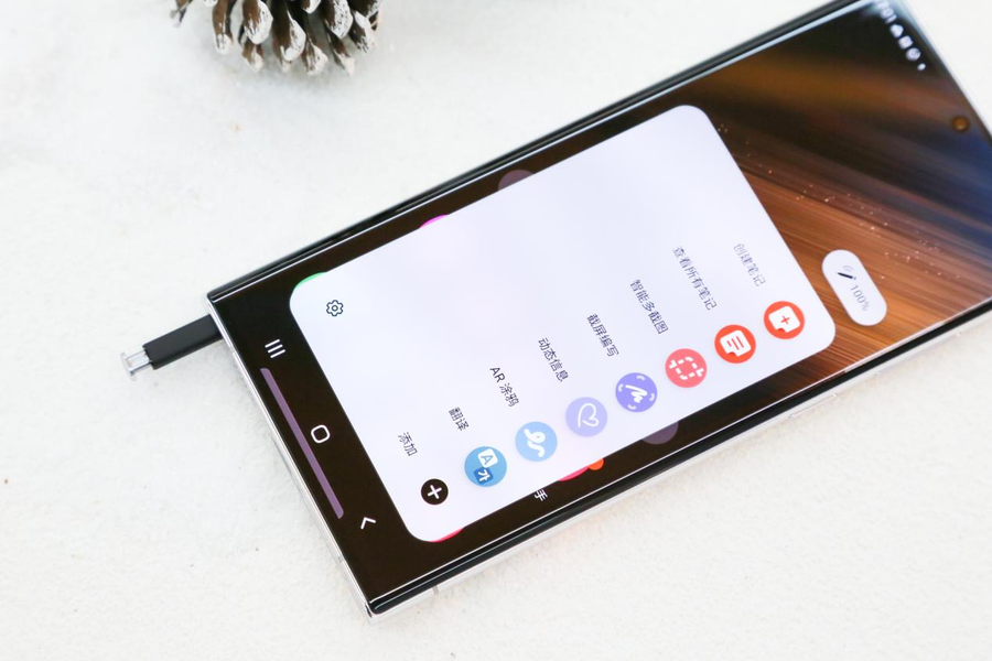 S-Pen是三星Galaxy S22 Ultra的精髓之一,虽然在此前的Note系列上就已经拥有S-Pen,但是三星Galaxy S22 Ultra针对S-Pen进行了升级,具备更低的延迟以及更快的相应速度,改善了手机的触控输入体验。