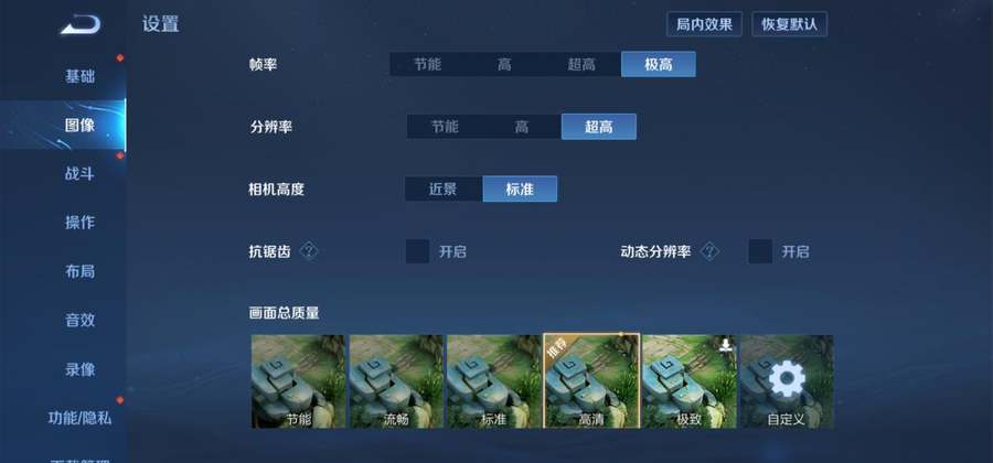 《王者荣耀》在三星Galaxy S22 Ultra中可以选择极高模式,在该模式下游戏的帧率最高将会达到120FPS。