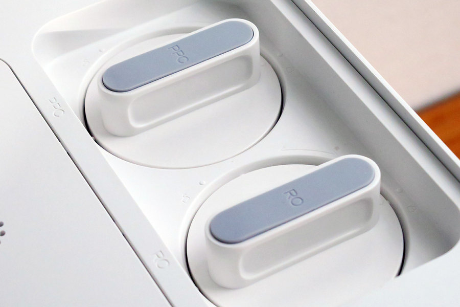 在屏幕两侧的是两个触控式的按键,可以用来切换出水模式,操作简单,即使是家中的老人也可以熟练的掌握米家台式净饮机冷热版的使用方式,屏幕下方则是触控的功能键。