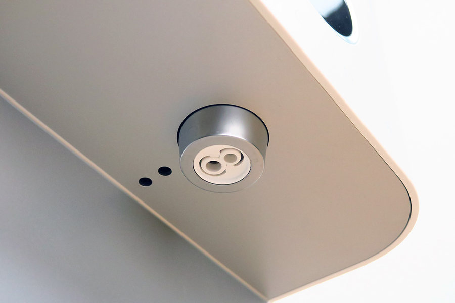 在米家台式净饮机冷热版的顶部还可以看到NFC的图标,其支持NFC功能,用户可以在米家APP中来设定水温和水量,并通过NFC来实现净饮水机的快速设定,更加的方便。