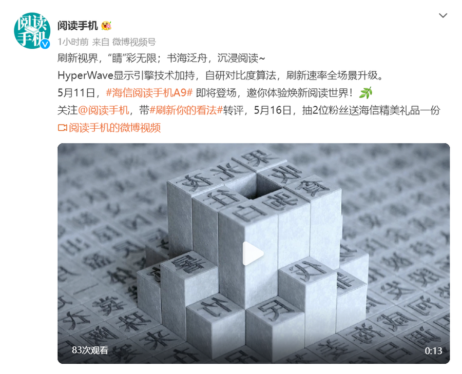 5月9日,官方预热海信阅读手机A9新品,公布了部分配置信息。