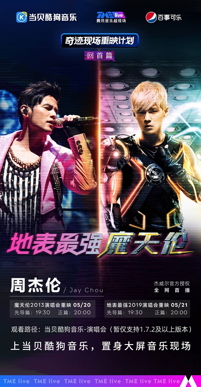 本次是"摩天伦"+"地表最强"双场演唱会重映,5月20日20:00上线"摩天伦",5月21日20:00上线"地表最强",此外,在19:35还有先导篇内容,想要看的小伙伴可以提前打开当贝酷狗音乐收看。