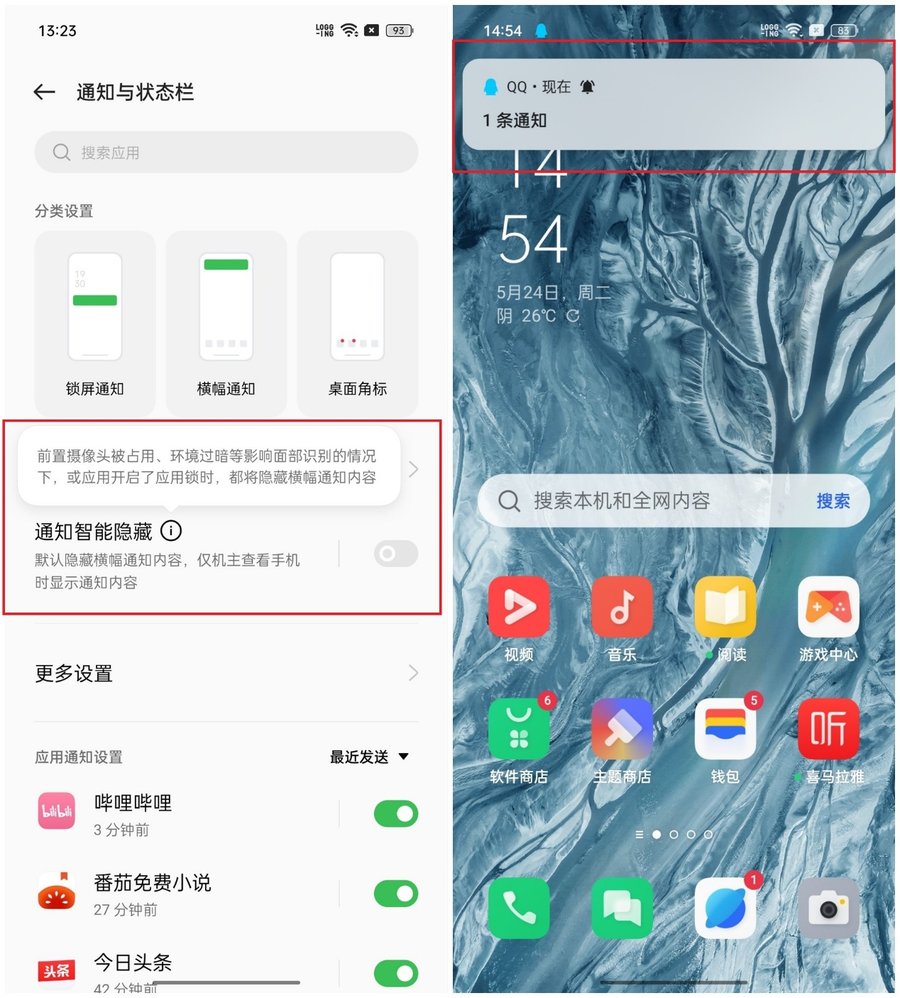 OPPO Reno8 Pro+内置了通知详情智能隐藏功能,当手机检测到非机主本人靠近手机时,会自动隐藏通知详情,不用担心自己隐私信息被陌生人看到。该功能在通知与状态栏页面中开启即可体验。