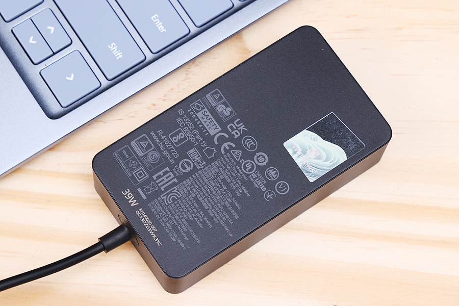 Surface Laptop Go 2配备的充电器为39W,用户可以选择使用原装充电器为设备充电,同时也可以选择通过USB-C接口来进行充电,充电方便,日常通勤时,可以不带充电器,使用手机Type-C充电器为其进行充电。
