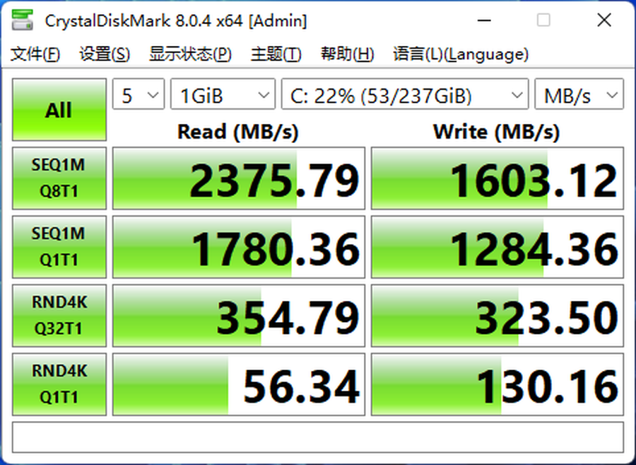 Surface Laptop Go 2拥有256GB的硬盘,硬盘顺序读取速度为2375.79MB/s,写入速度为1603.12MB/s,传输速度非常快,日常使用也很不错。
