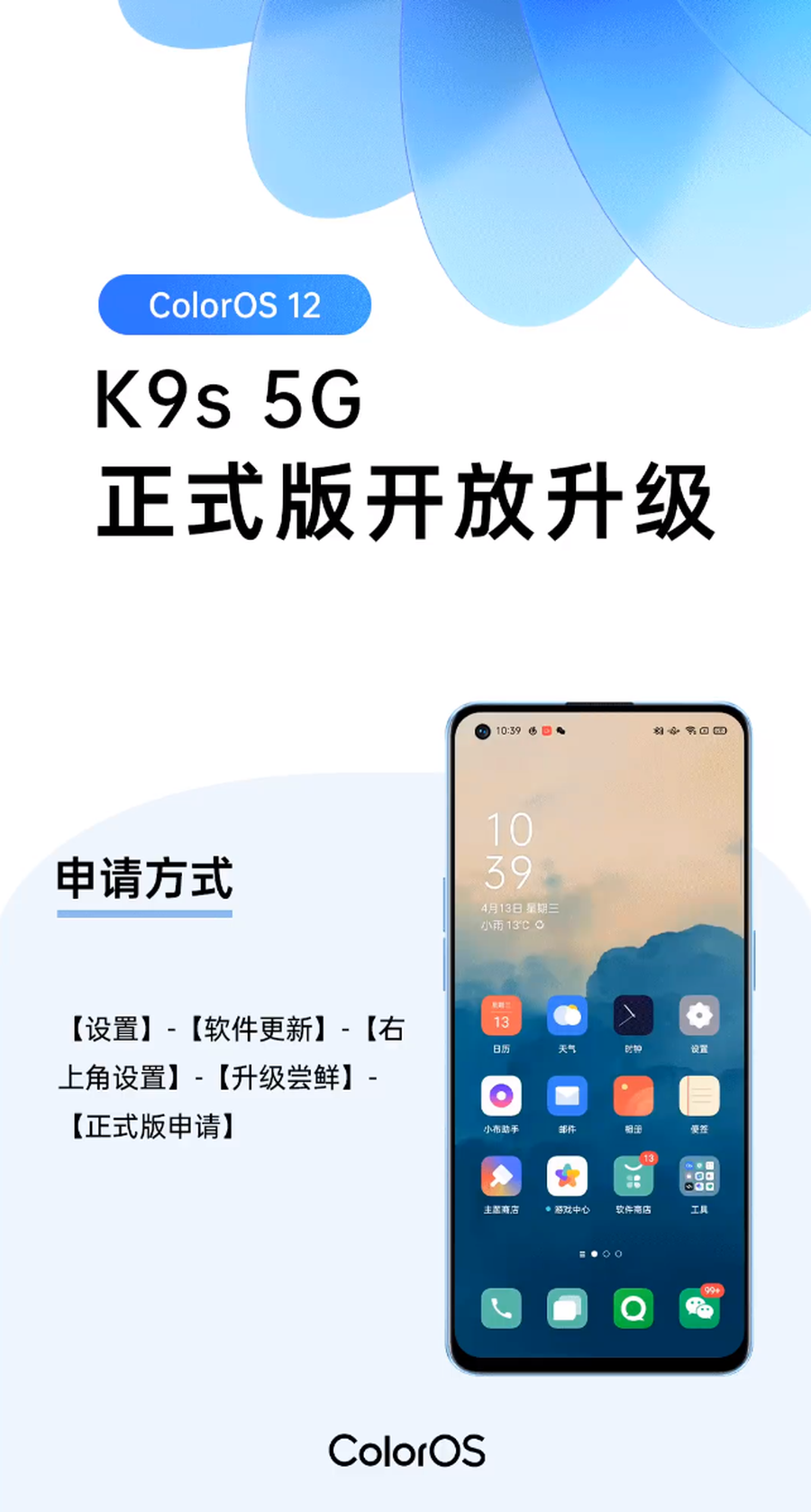 6月16日,OPPO官方宣布,OPPO K9s 5G ColorOS 12正式版开放升级,基于Android 12打造,该机型的用户可以升级体验了。