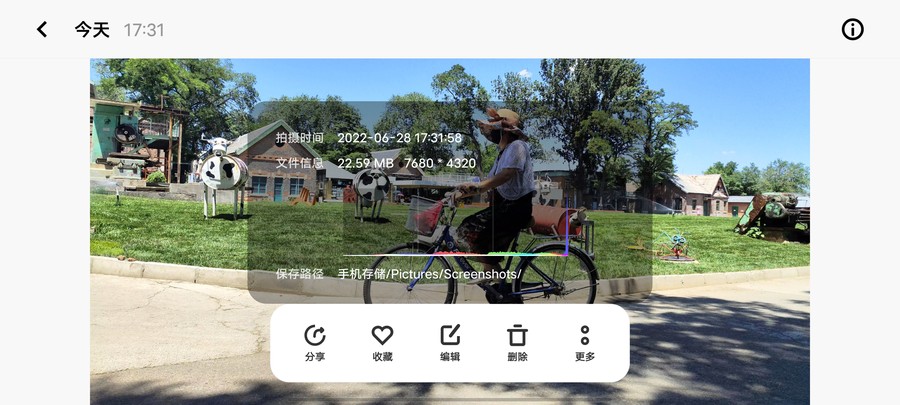 8K照片是目前手机厂商对于8K视频最常用的应用场景,通过手机拍摄的8K视频截取一帧高分辨率的影像作为照片,比较适合拍摄瞬间快速移动的被摄对象,相当于在一组高速连拍的画面选选择最合适的一张图片来保存,并且具备3300万像素,这可比4K视频的820万像素来说尺寸要大多了,直接进行打印输出都没问题。