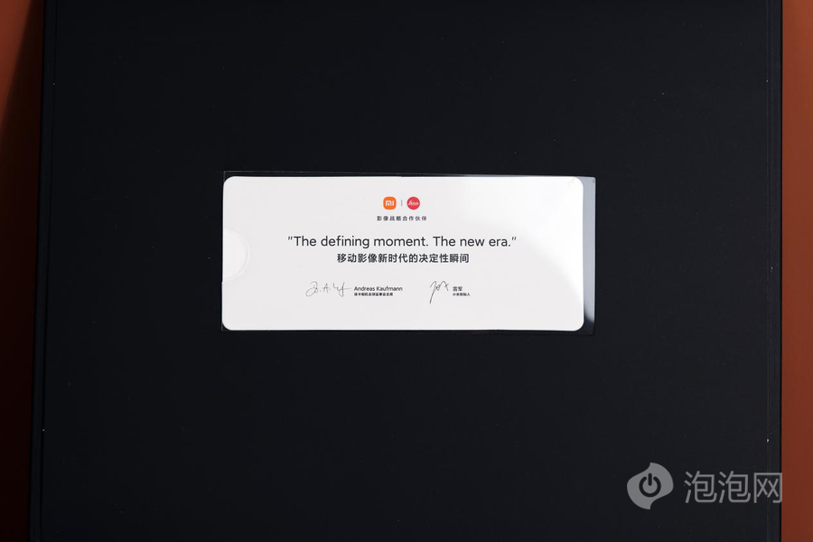 在箱子的上盖印有徕卡相机全球监事会主席Andreas Kaufmann以及小米创始人雷军的签名卡片。