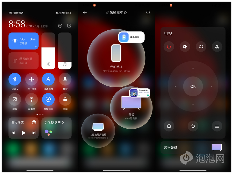 妙享中心也是小米12S Ultra带来的一项新功能,通过小米妙享中心,用户可以更直观的将手机与其他设备进行互联,音乐可以通过拖动的方式在其他小米音箱上播放,也可以将手机画面直接投屏到电视中。