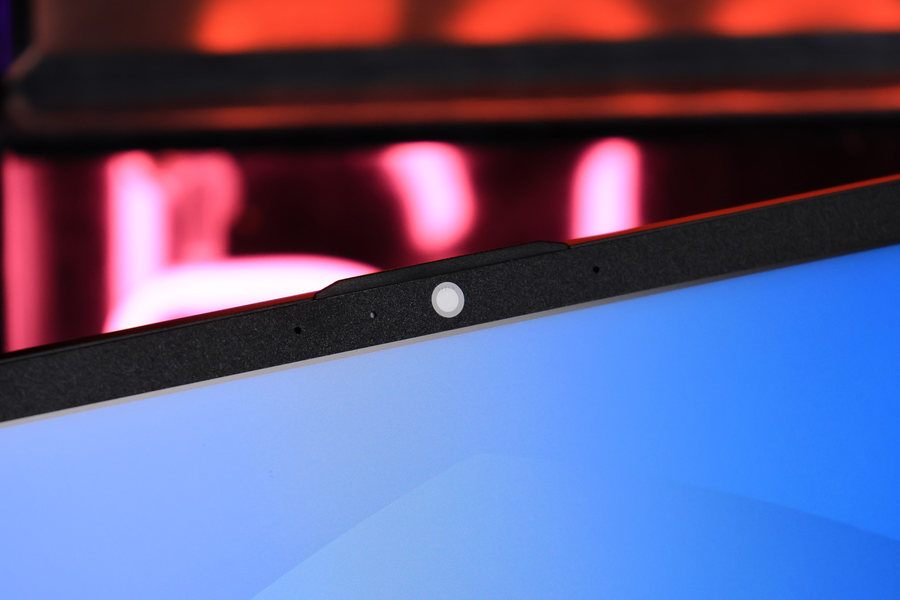 屏幕上边框设计了摄像头和麦克风拾音孔。
