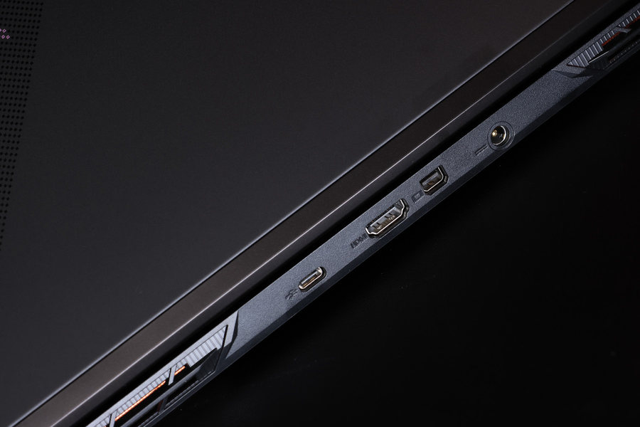 它的机身后部设计有一个Type-C接口、一个HDMI接口、一个迷你DP接口,以及电源接口。