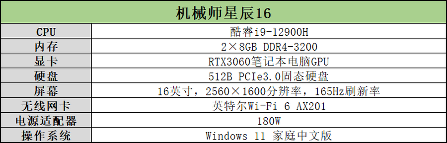 此次评测的这款机械师星辰16搭载有酷睿i9-12900H处理器、RTX3060笔记本电脑GPU,以及一块16英寸2.5K分辨率165Hz专业电竞屏幕,整机实力过硬,能够带主流玩家们畅玩众多新世代游戏。