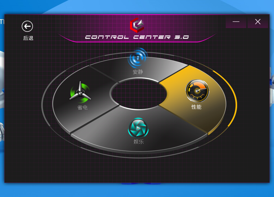 在Power Modes(电源模式)界面下,玩家们可以切换这款游戏本的系统运行模式。该软件预置了四种系统运行模式,包括“性能”、“娱乐”、“省电”以及“安静”。