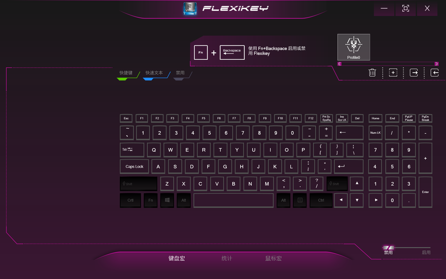 FLEXIKEY界面下,玩家们可以自定义键盘宏或者鼠标宏,依靠快捷键来提升游戏过程中的操作效率。