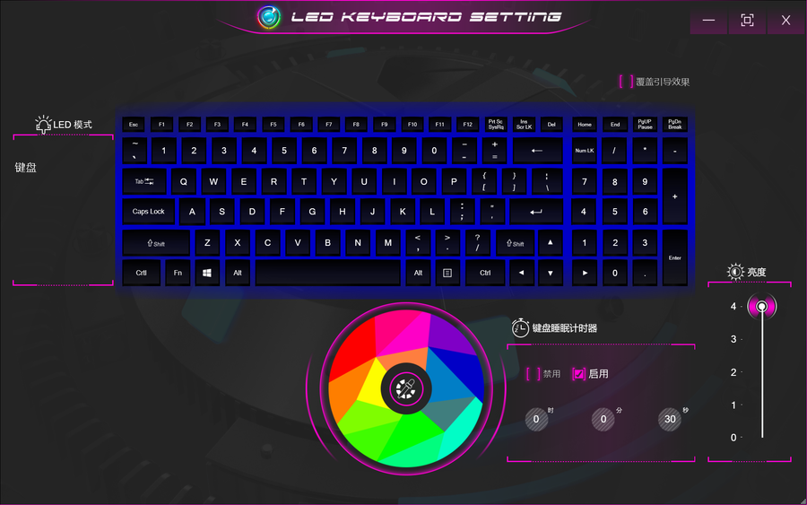在“LED KEYBOARD SETTING”界面下,玩家们可以调节键盘的背光。