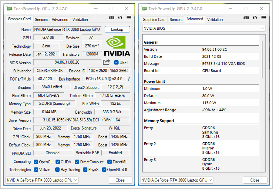 机械师星辰16这款RTX 3060笔记本电脑GPU的GPU频率为900MHz、Boost频率为1425MHz,显存频率为1750MHz(等效14000MHz)。