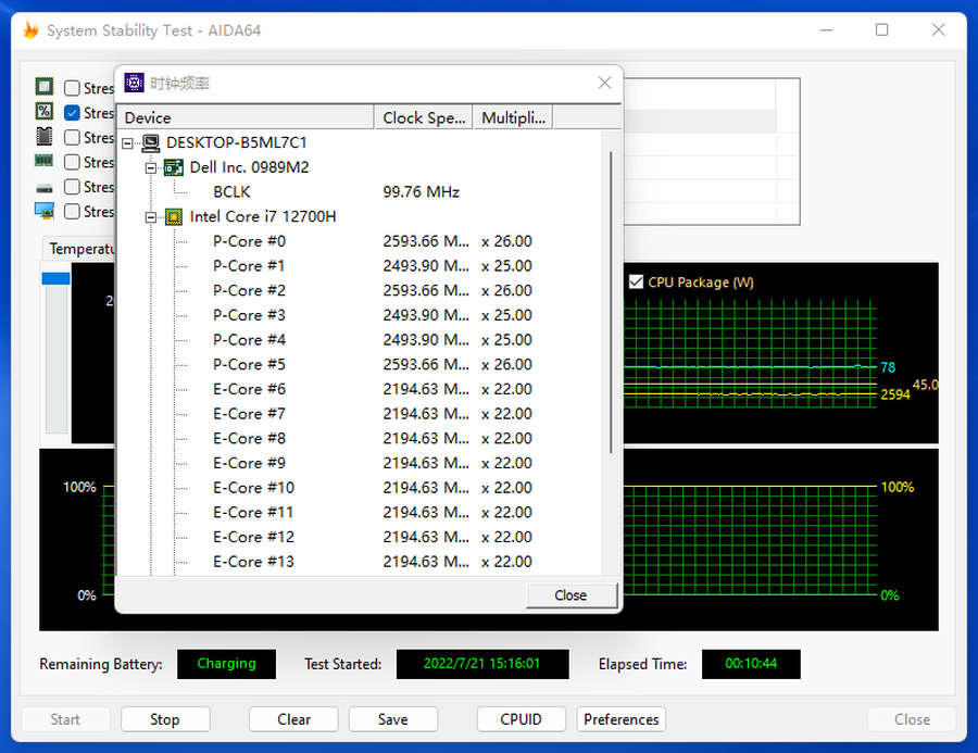 可以看出,在双烤机状态下,戴尔工程师对这款灵越14 Plus 7420采取的是保显卡、舍CPU的性能释放策略,这样的好处是显卡性能释放比较好,但是酷睿i7-12700H的性能释放就明显不足了,导致CPU频率过低。基于此,笔者希望戴尔能够重新优化一下灵越14 Plus 7420的性能释放策略。