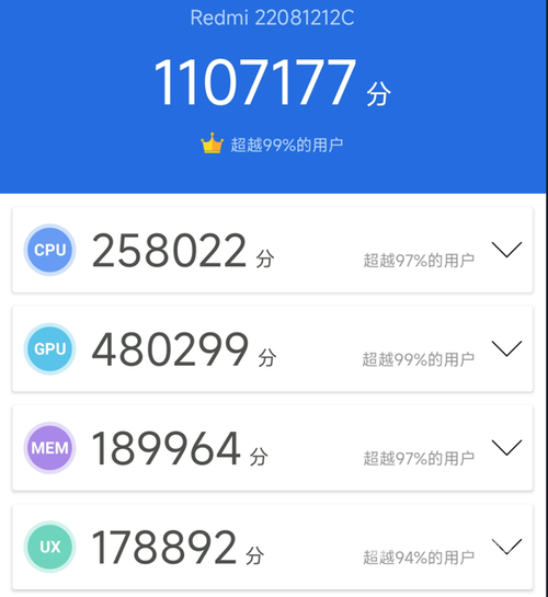 经过实测,Redmi K50至尊版的性能测试得分已经超过了110万分,这样的成绩已经达到了游戏手机的水平。