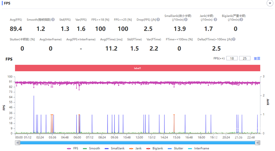 《和平精英》在流畅画质下可以开启90帧模式,经过一局游戏的测试,PerfDog测试显示,平均帧率为89.4FPS,游戏过程流畅,体验出色。