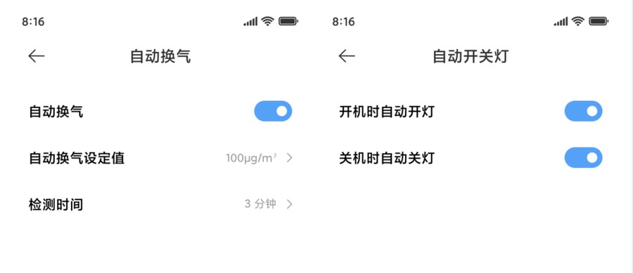 米家智能净烟机P1也可以设定自动换气以及自动开关灯的功能,在操作方面进一步的简化用户手动设置。