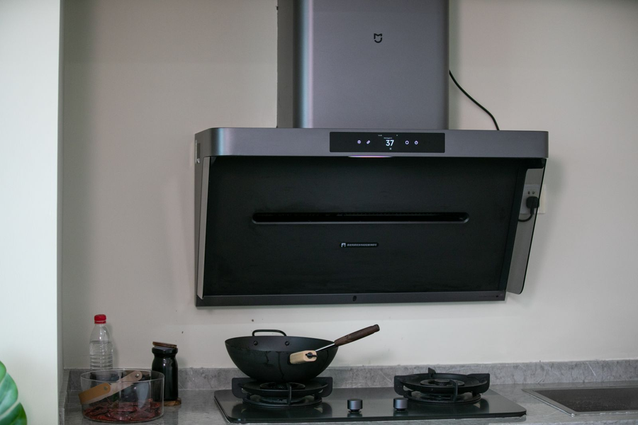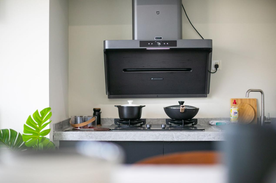 米家智能净烟机P1能够产生900Pa的大静压,即使是在做饭高峰期也不用担心油烟倒灌的问题出现。