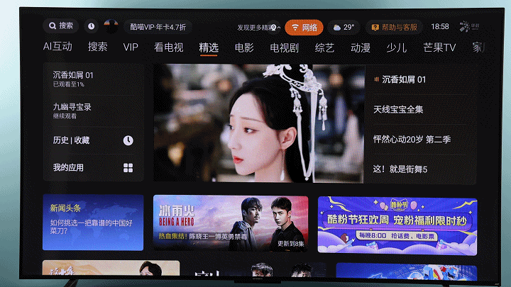 内容方面,创维90A23基本上涵盖了主流的视频平台,包括银河爱奇艺、New TV极光、酷喵、芒果TV等视频平台的资源,热播的电视剧、院线大片、动漫、综艺、体育同步更新,平台内容全覆盖。。