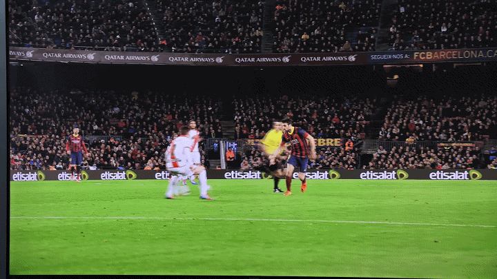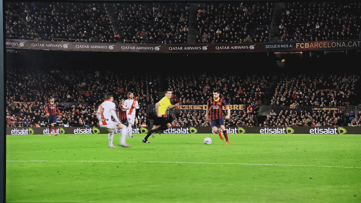 从上面的对比动图可以看出,在开启了MEMC运动补偿功能后,球员的跑动与足球的运动轨迹更加流畅,观看时不会让人有头晕的感觉,这对超大屏电视来说十分关键。