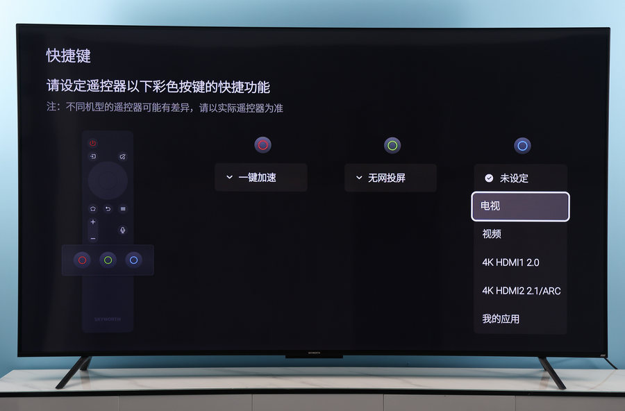 遥控器还可单独设置独立的快捷功能