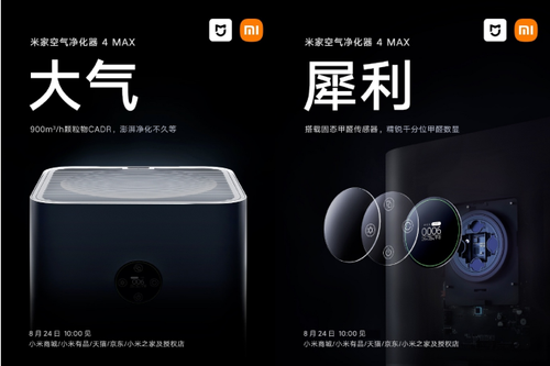 8月23日小米智能生态官方微博宣布米家空气净化器4 MAX将于8月24日上午10:00开启预售。大至900m³/h 澎湃净化,细至千分位甲醛精锐监测,畅爽超大杯洁净。