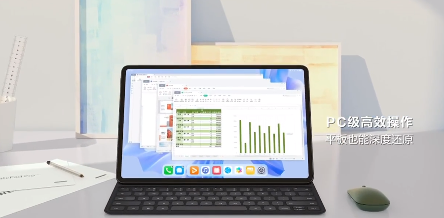 作为搭载HarmonyOS 3的华为旗舰平板,华为MatePad Pro 12.6英寸可以在平板上实现PC应用的原生体验,如使用WPS时刻体验包括UI原生体验、窗口随处悬停、窗口自由缩放、触控交互、键鼠交互等,同时也允许在多窗口之间进行快速切换,还能实现WPS表格的数据、图表、公式等功能,以及WPS演示的视图、对象等功能,在平板上也能实现高效办公。当连接鼠标时,相较于HarmonyOS原生的圆点光标,在平板桌面WPS中呈现箭头式光标,华为MatePad Pro 12.6英寸精准指向性的箭头可以更好地选中功能按钮,与PC上操作鼠标的体验几乎一致。