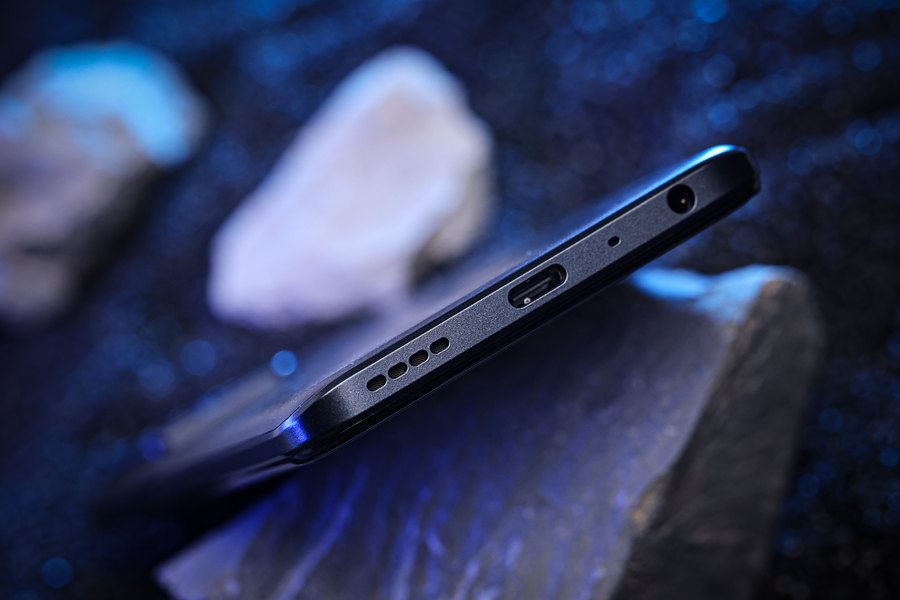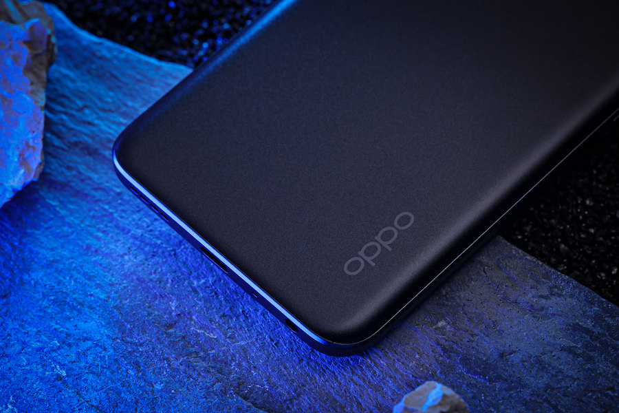 此次OPPO K10x共有“极夜”和“极光”两款配色,我们手中拿到的是“极夜”配色,其背板采用一层纯黑色的油墨,呈现出极致的黑色,增添机身质感;同时,微米级光哑同体机身,后盖大部分表面为哑光效果,不同角度可以看到细微的颗粒感,且带来细腻爽滑的触感。