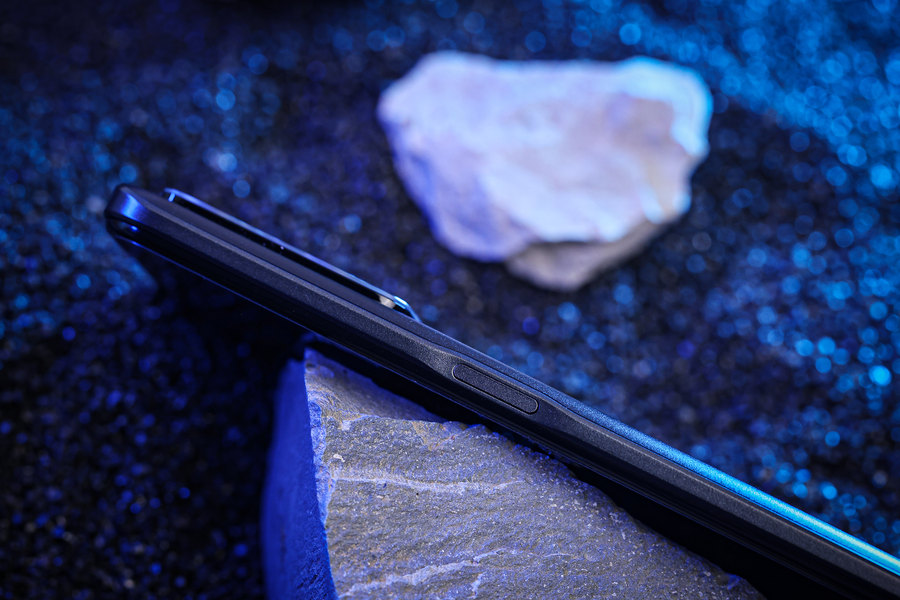 从侧面看上去手机十分轻薄,手机采用侧面指纹解锁
