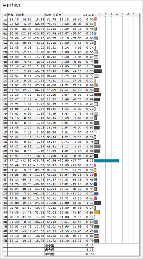 色彩精准度方面,平均△E为0.7,△E≥3的颜色有1种,色准依旧出色。这么棒的屏幕,足以打动很多设计师的心!