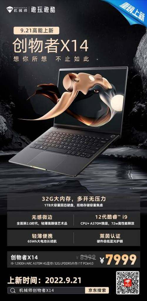 今年8月,机械师发布了一款实力派新机——机械师创物者X14,它不仅拥有酷睿i9-12900H处理器联袂锐炫A370M独立显卡的双IN组合,而且还特别搭配了一块京东方FLIT无感微边屏幕,惊艳的画质表现,令设计师们不容错过!