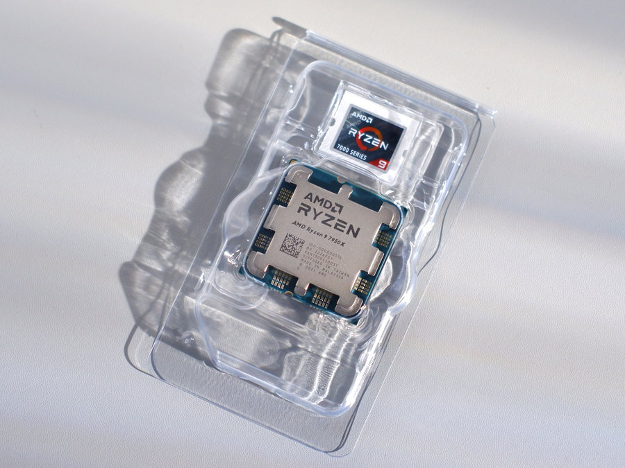 拆开锐龙9 7950X的包装盒,这颗处理器被放置于常规的透明包装盒里面。