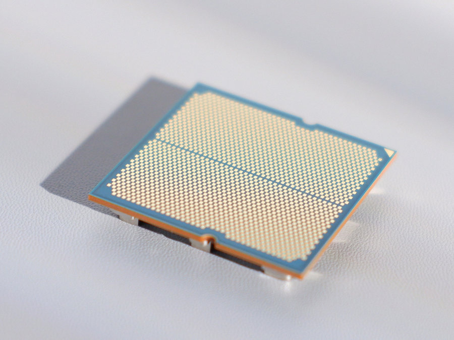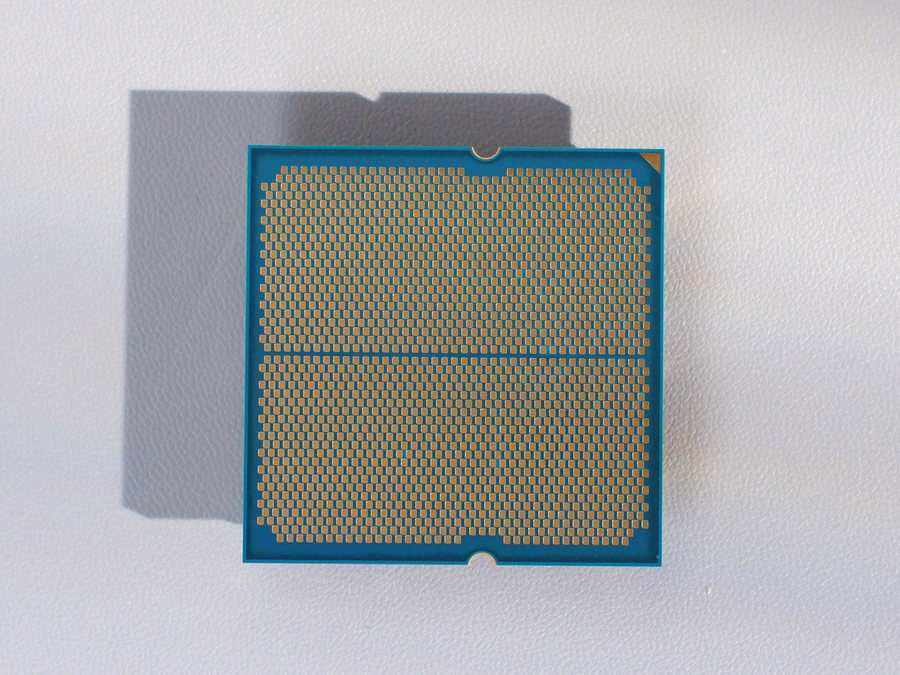上一代Zen 3处理器底面密密麻麻的针脚,现在在新一代Zen 4处理器上面已经看不到了。