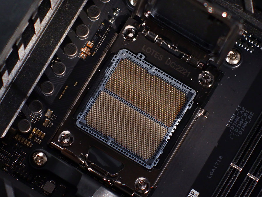 新一代Zen 4处理器采用了Socket AM5(LGA1718)接口设计,处理器封装工艺改为LGA,这下跟英特尔处理器一样了,处理器底面只有触点,而针脚则设计在了主板处理器插槽内。
