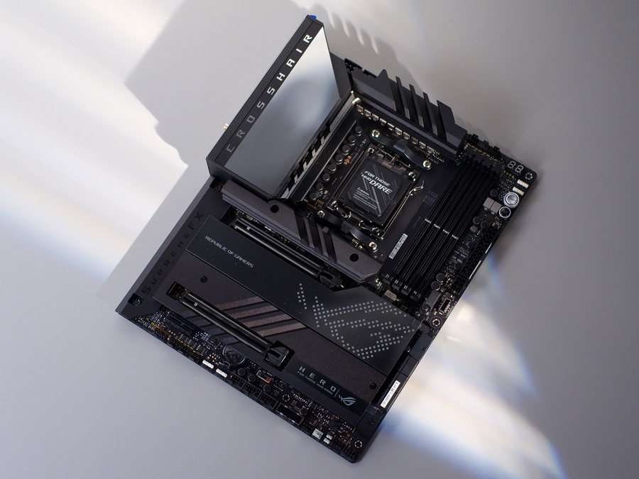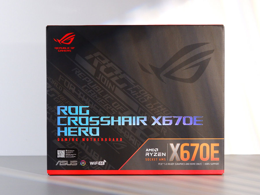 此次评测,笔者选用为Zen 4处理器搭配的主板为华硕ROG CROSSHAIR X670E HERO。