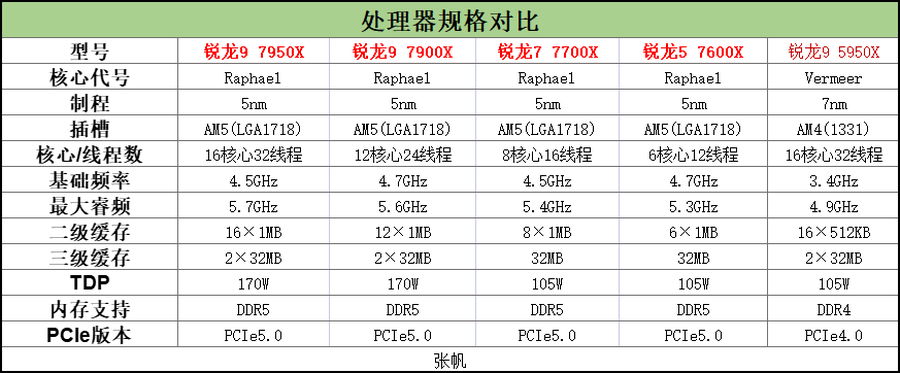 从上面处理器规格对比表格来看,即使是锐龙5 7600X这种锐龙5级别的处理器,它的最大加速频率也是要明显高于上一代锐龙9 5950X。