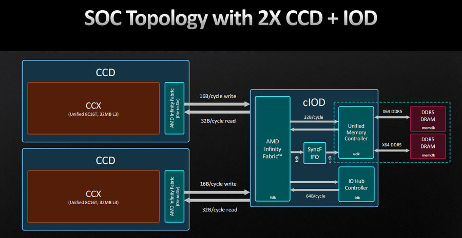 新一代Zen 4处理器内部架构为:至多两个5nm核心Die,加一个6nm I/O Die。