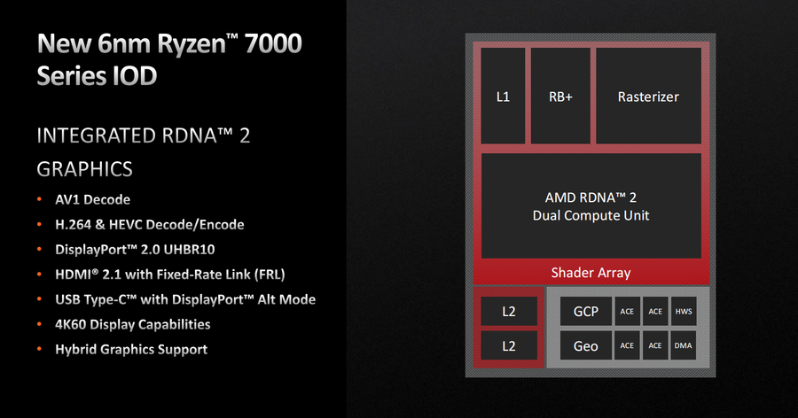 新一代Zen 4处理器,后缀为X的型号均搭配了一颗RDNA2架构的独立GPU。相当于英特尔的核芯显卡。