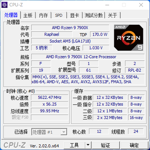 锐龙5 7600X为6核心、12线程设计。这款处理器的国内首发价格为2249元。