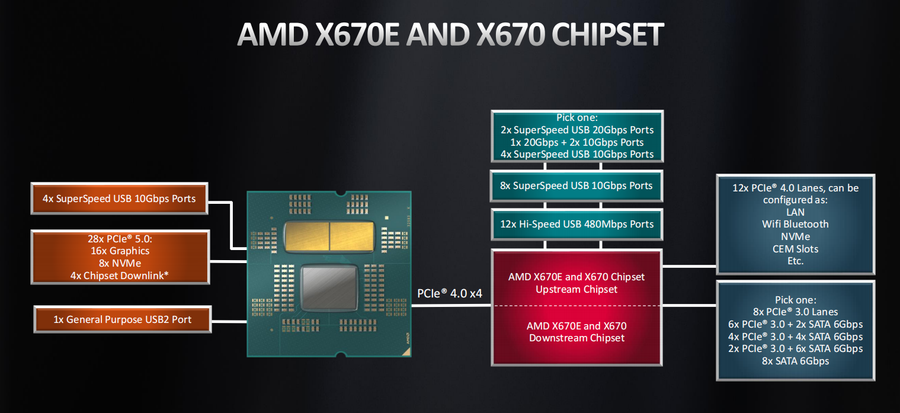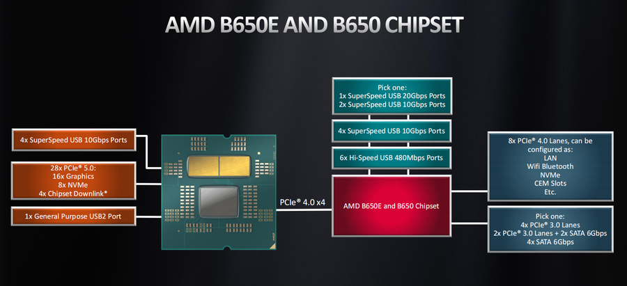 这4款主板的芯片组均通过PCIe4.0通道与Zen 4处理器连接。