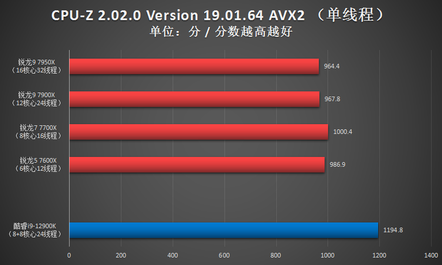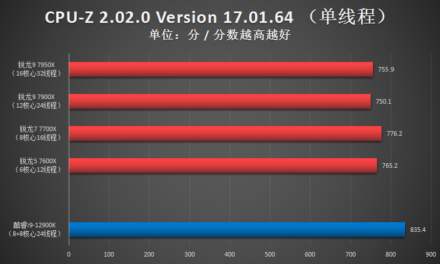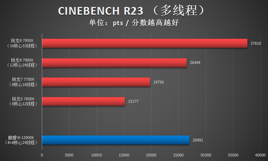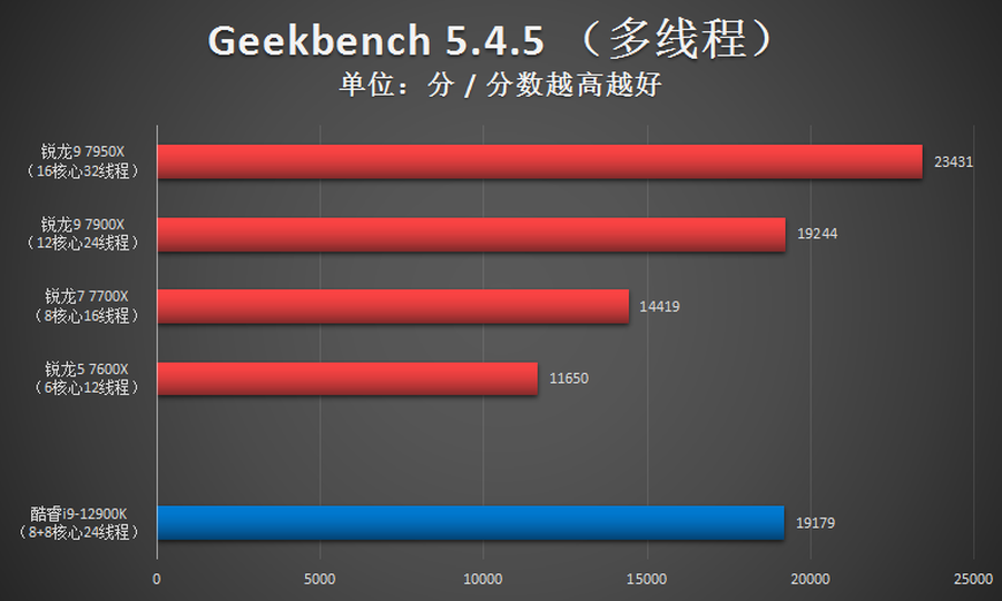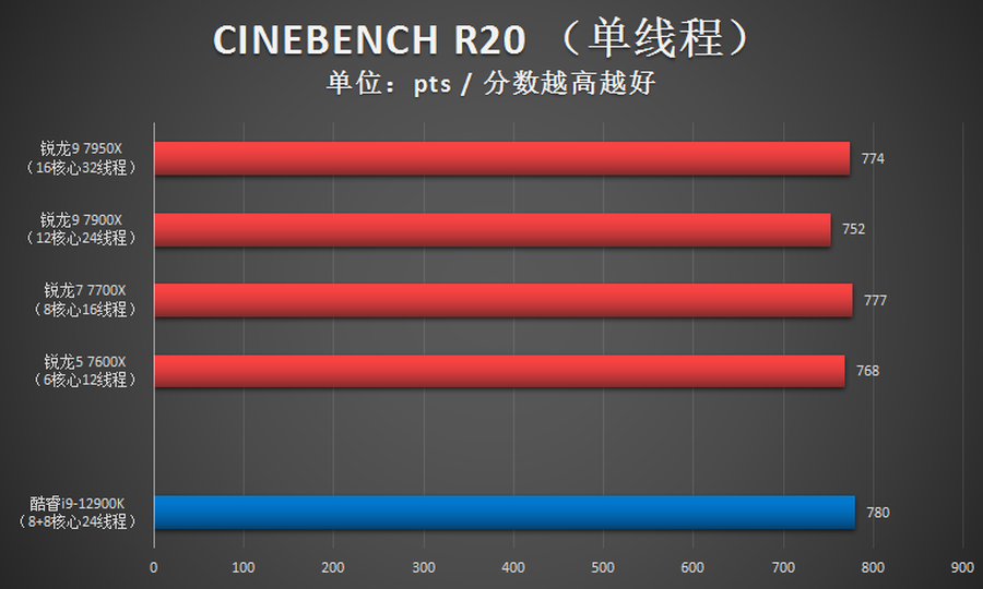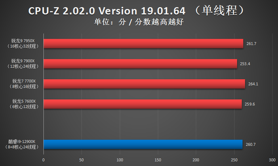 此次首发评测,除了测试4款Zen 4处理器之外,笔者还加入了酷睿i9-12900K的成绩,以作对比。