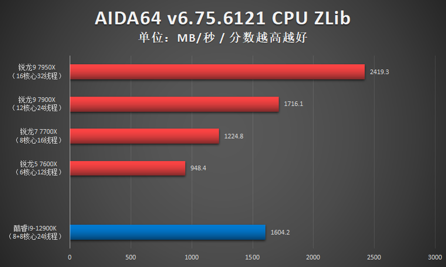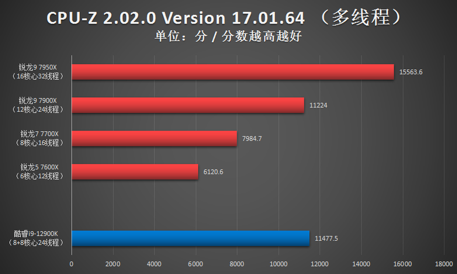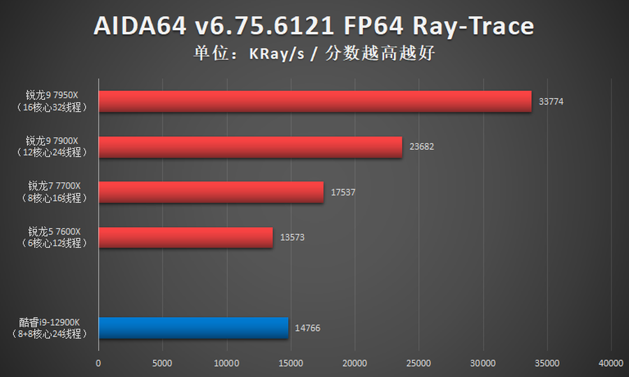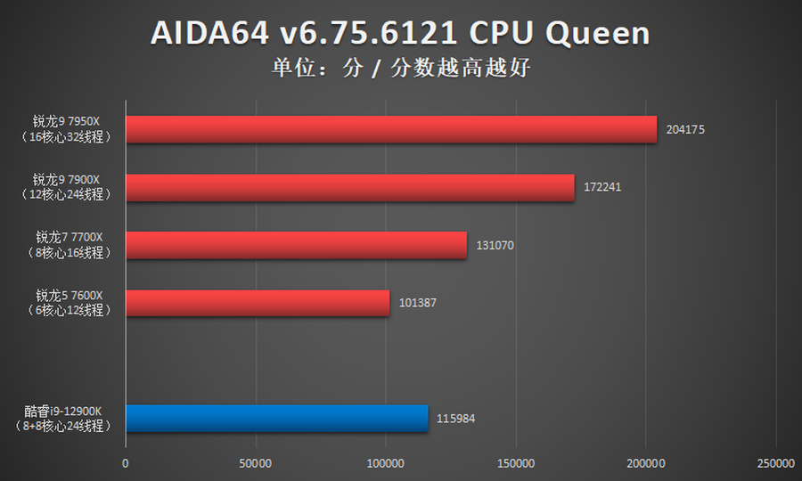 理论性能测试小结:AMD新一代Zen 4处理器的多核心性能非常出色,酷睿i9-12900K已不是新一代锐龙9的对手。