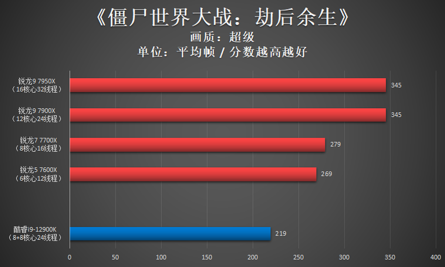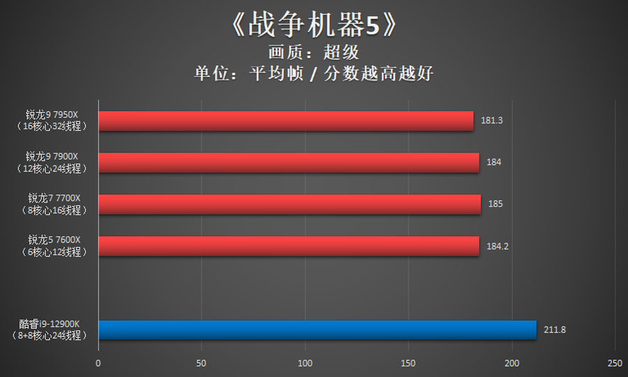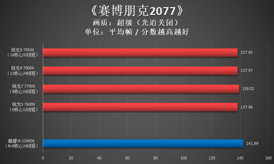 游戏测试小结:通过上述9款游戏实测来看,AMD新一代Zen 4处理器与酷睿i9-12900K互有优势项目。总得来看接近55开的局面。