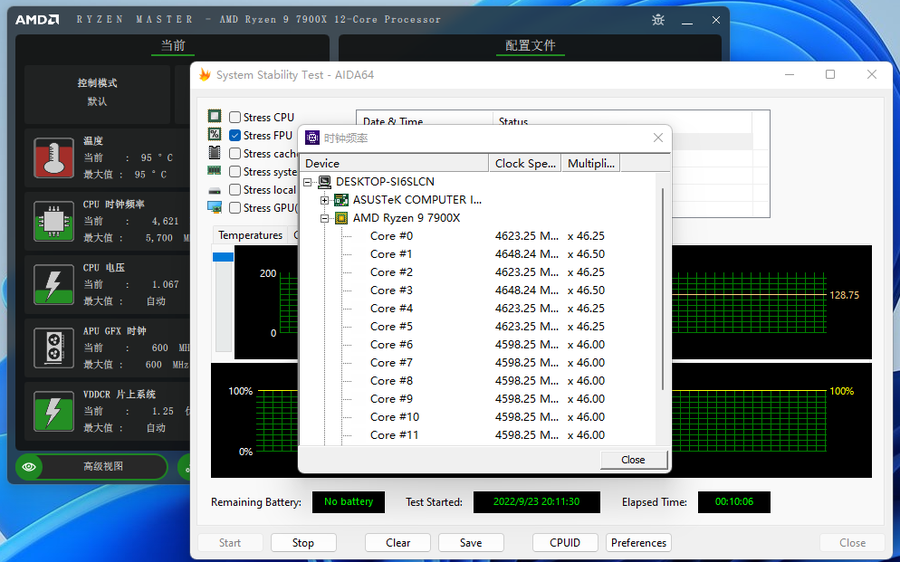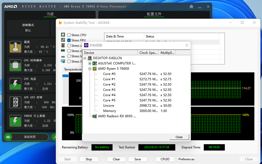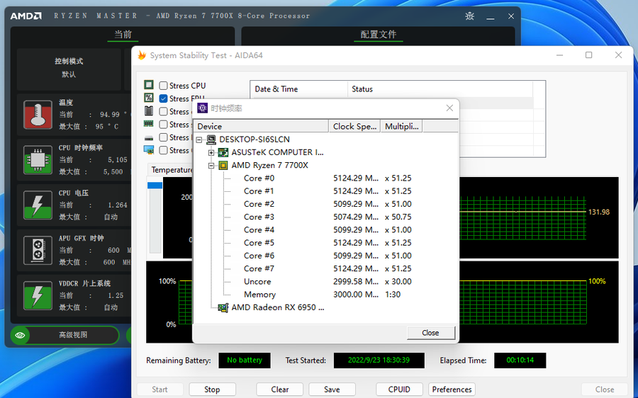 如果所示,笔者这颗锐龙9 7950X处理器的体质分数为114 SP。